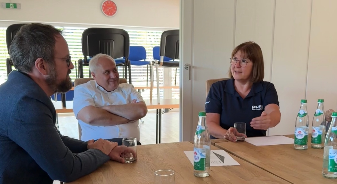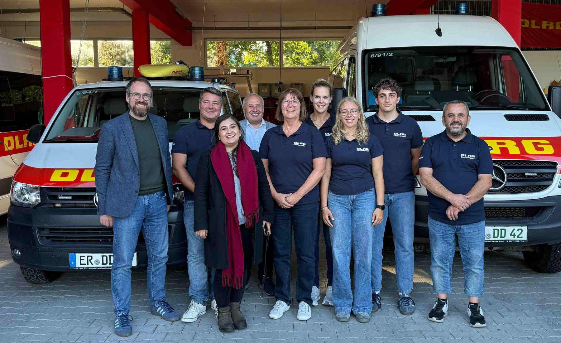 Nach der Besichtigung unserer Wachstation am Weiher, unseres Fuhrparks und des Wasserrettungszentrums setzten wir uns mit ihm zusammen, um über unsere vielseitigen Aufgabenbereiche mit ihm zu reden: über die Wasserrettung, den Wachdienst und unsere Rettungshundestaffel, über unsere Einsätze im Katastrophenschutz meist beim Hochwasser der letzten Jahre und über unsere Jugendarbeit mit Schwimmausbildung, Jugendaktionen und dem Jugend-Einsatz-Team. In einem offenen Austausch konnten wir gemeinsam Möglichkeiten der Verbesserungen, Optimierungen und Unterstützungen besprechen.